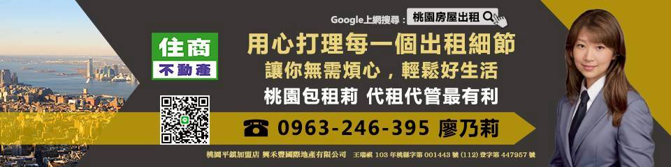 桃園房屋出租 廖乃莉 0963-246-395
