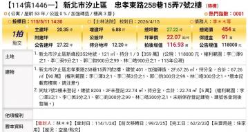 台北法拍專家 新北市汐止區忠孝東路258巷15弄7號2樓