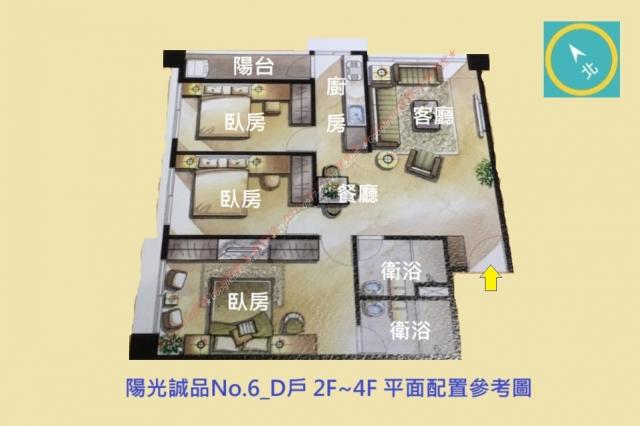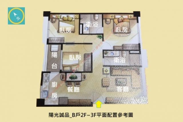 - 格局: 3房(室) 2廳 2衛 1陽台 1廚房