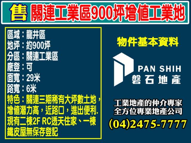 關連官方工業區稀有釋出|正15米路|32米大面寬廠房出售