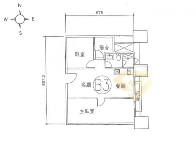 - 格局: 2房(室) 2廳 1衛 1陽台 1廚房