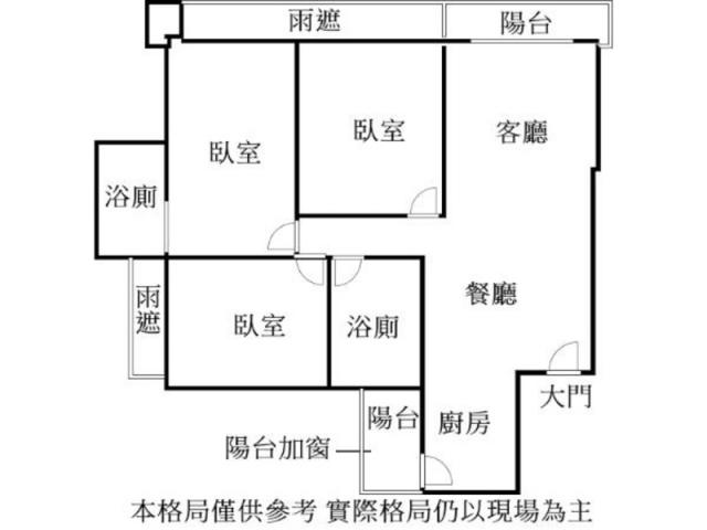 - 格局: 3房(室) 2廳 2衛 2陽台 1廚房