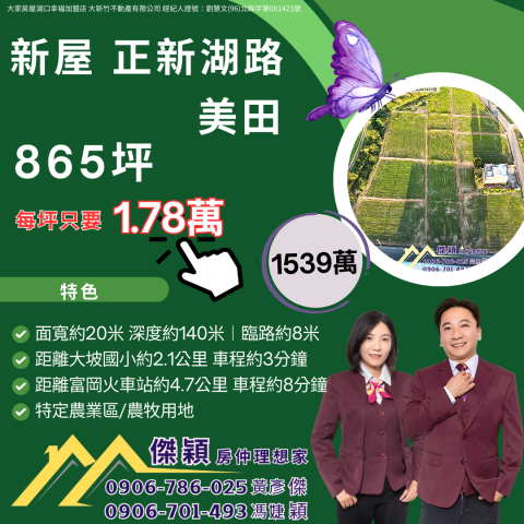 新屋社子國小資材美田 湖口土地買賣傑穎房仲