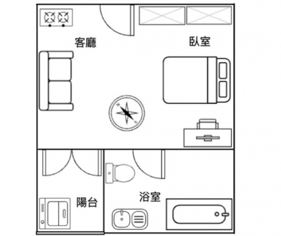 - 格局: 1房(室) 1廳 1衛 1陽台