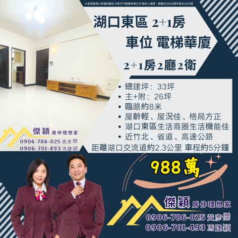湖口東區2加1房車位電梯華廈 湖口土地買賣傑穎房仲