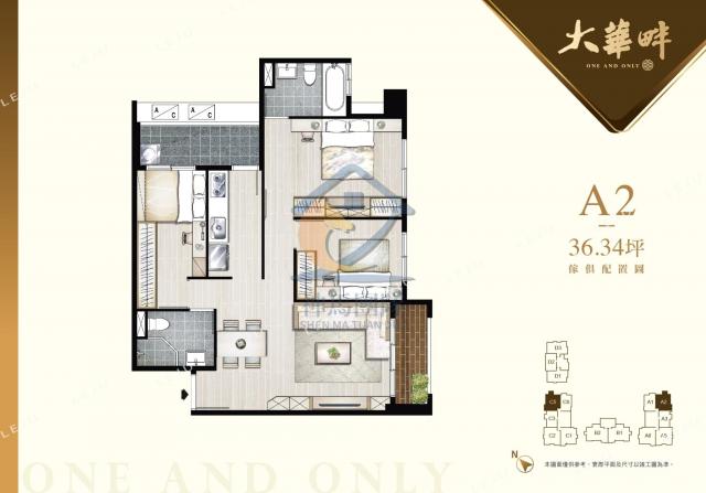 - 格局: 3房(室) 2廳 2衛 2陽台 1廚房