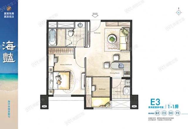 - 格局: 1+1房(室) 1廳 1衛
