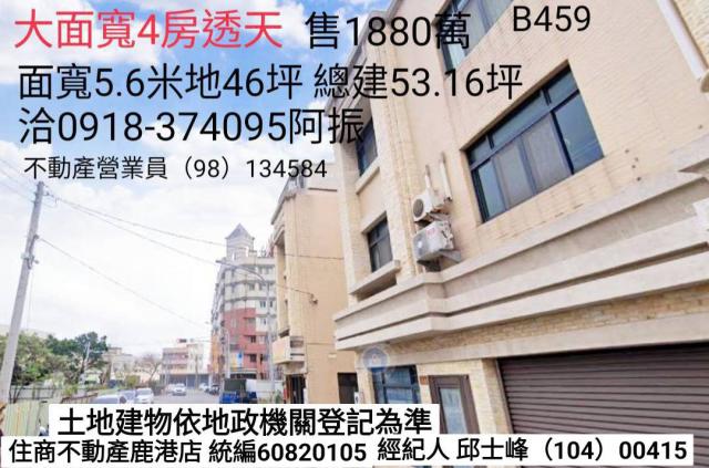 鹿港透天大面寬4房透天B459