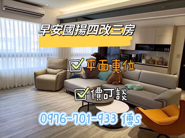 | 優勢 | 1. 屋齡僅 2 年,屬於新成屋狀態,建築品質較佳。 2. 坪數高達 74 坪以上,四改三房格局方正且空間寬敞。 3. 包含平面車位,且社區規劃可電梯直達車位,便利性高。 4. 社區為國揚開發品牌,管理完善(24 小時警衛、垃圾集中處理)。 5. 全室皆對外窗,通風採光條件良好。 |