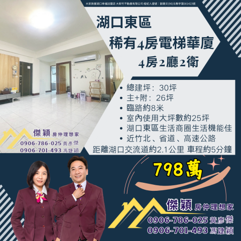 湖口東區稀有4房電梯華廈 湖口土地買賣傑穎房仲