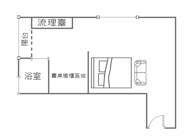 - 格局: 1房(室) 1廳 1衛 1陽台 1廚房