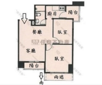 - 格局: 2房(室) 2廳 1衛 2陽台 1廚房