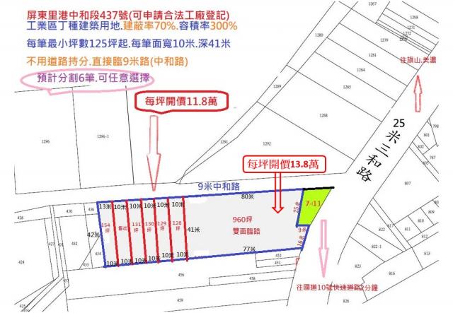 屏東里港中和社區大面寬農地|北高透天大樓|工業地|工業廠房
