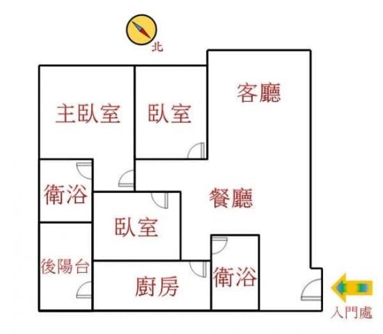 - 格局: 3房(室) 2廳 2衛 1陽台 1廚房