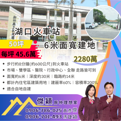 湖口車站賺錢住店透天 湖口土地買賣傑穎房仲
