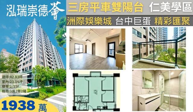 獨家~洲際漢神百貨仁美學區全新交屋三房平車雙陽台邊間