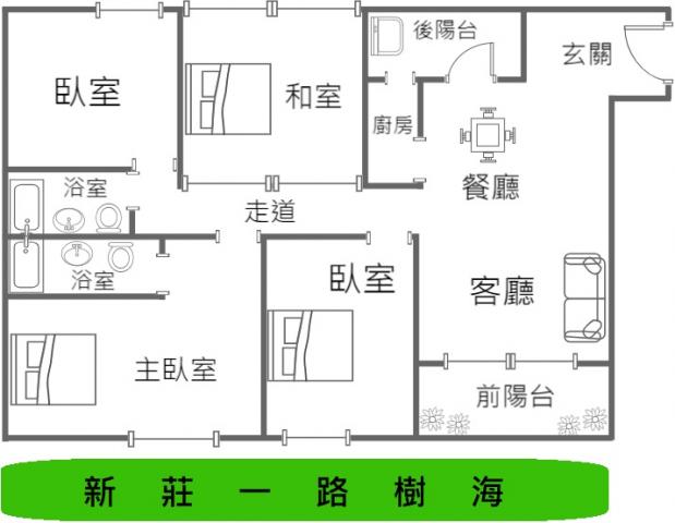 - 格局: 4房(室) 2廳 2衛 2陽台 1廚房