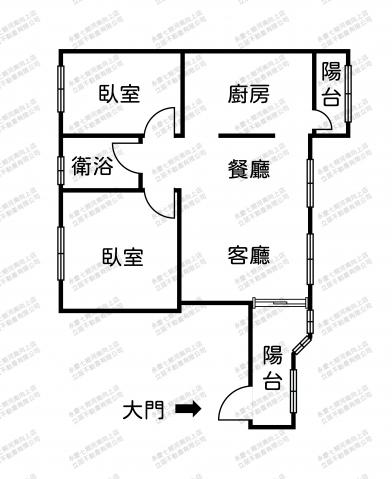 - 格局: 2房(室) 2廳 1衛 2陽台 1廚房