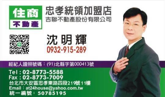 您好 我是住商不動產_忠孝統領加盟店_經紀人:沈明輝0932915289