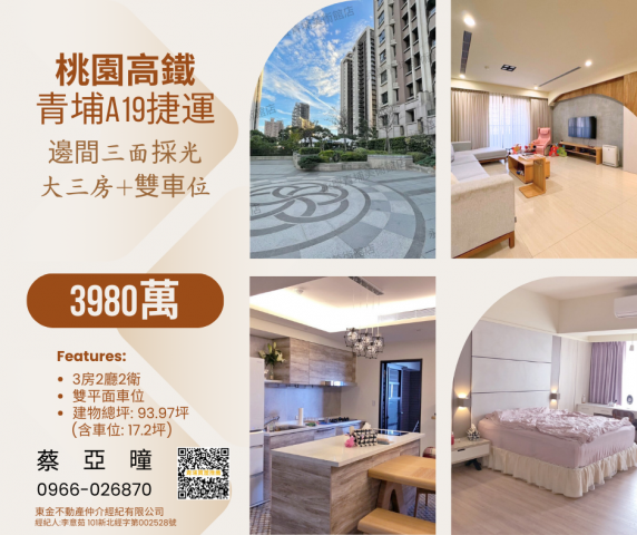 青埔市二期 A17捷運宅 三房+平面車位 青埔買屋推薦