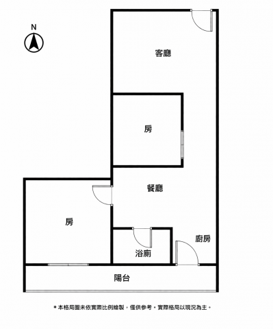 - 格局: 2房(室) 2廳 1衛 1陽台