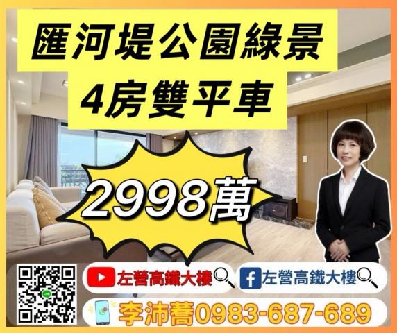 左營高鐵大樓 河堤公園綠景樣品宅稀有四房+雙平車