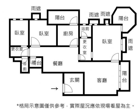 - 格局: 3房(室) 2廳 3衛 2陽台