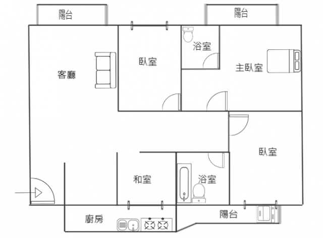 - 格局: 4房(室) 2廳 2衛 3陽台