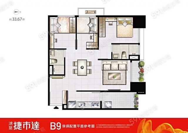 A7捷運宅【鴻築捷士達】高樓邊間三房車位 林口A9買房