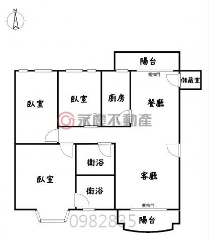 - 格局: 3房(室) 2廳 2衛 2陽台 1廚房