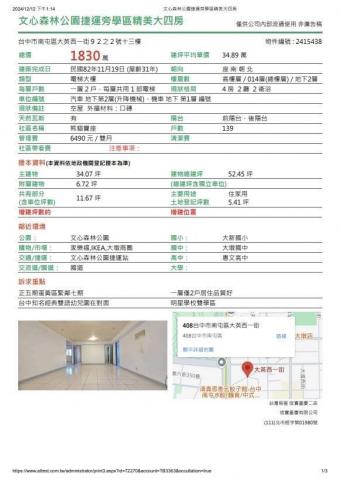 文心森林公園捷運站旁學區精美大四房附小休旅車位