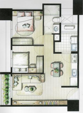 - 格局: 2房(室) 2廳 1衛 1陽台 1廚房