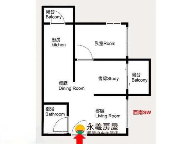 - 格局: 2+2房(室) 1廳 1衛 2陽台