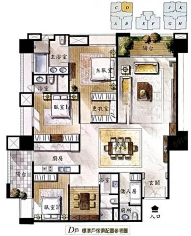 - 格局: 4房(室) 2廳 3衛