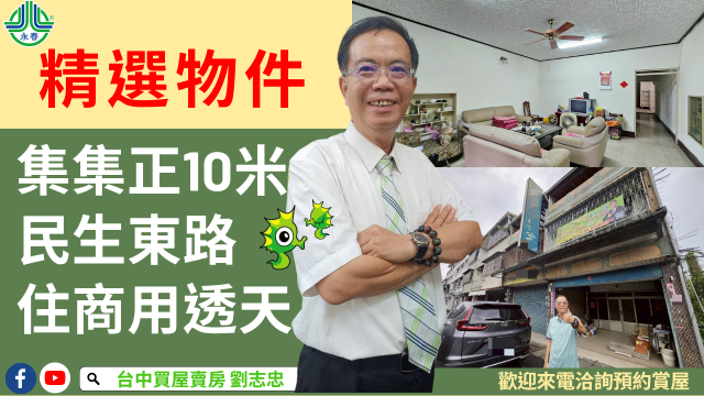台中買屋賣房 土地王劉志忠集集正10米民生東路低總價住商用透
