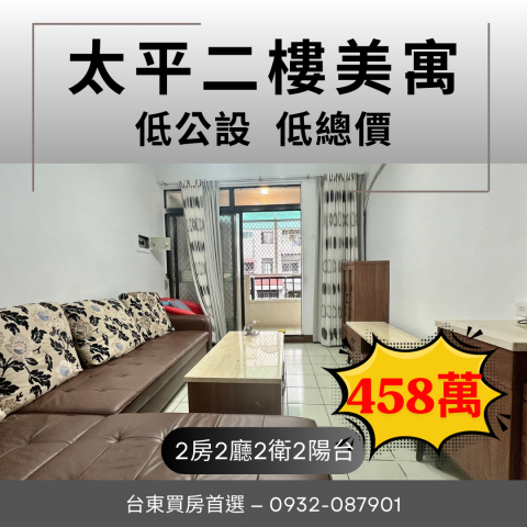 台東買房首選 台東市區兩房平車一次到位
