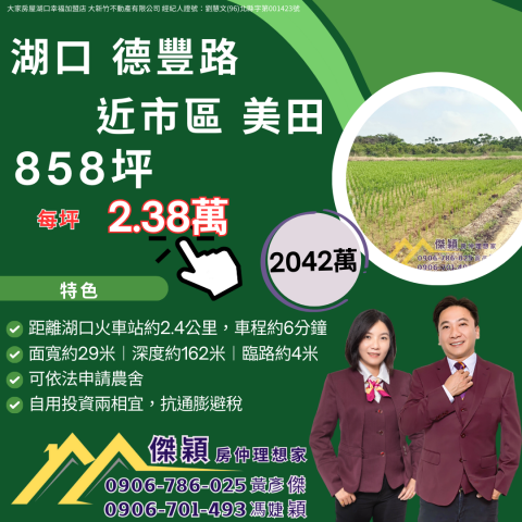 湖口近成功路美田 湖口土地買賣傑穎房仲