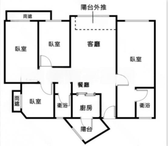 - 格局: 4房(室) 2廳 2衛 2陽台 1廚房