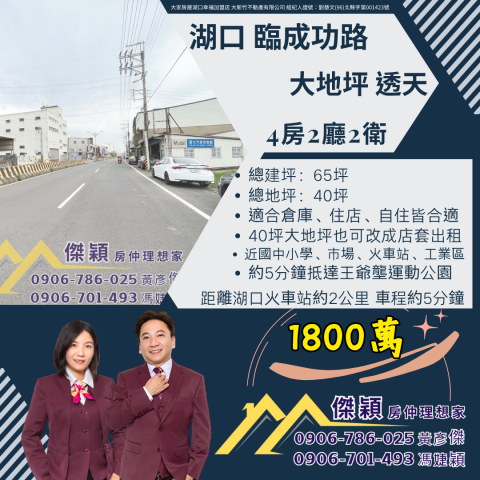 湖口後站成名透天 湖口土地買賣傑穎房仲