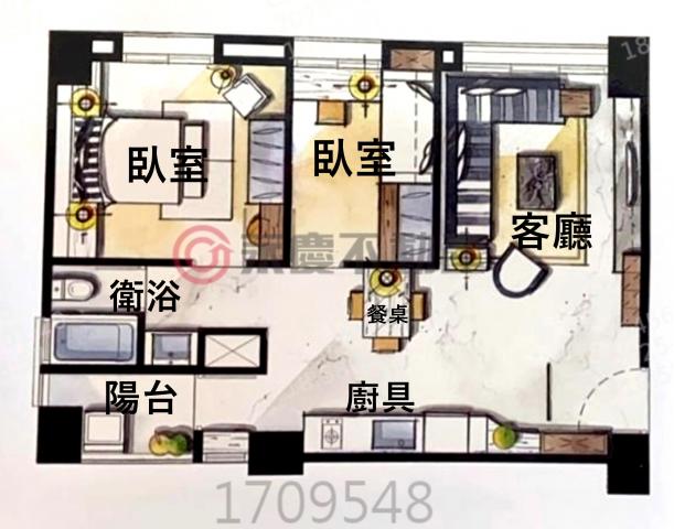 - 格局: 2房(室) 2廳 1衛 1陽台 1廚房