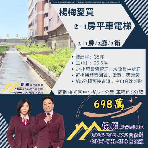 楊梅愛買生活圈2加1房 平車電梯華廈 湖口土地買賣傑穎房仲