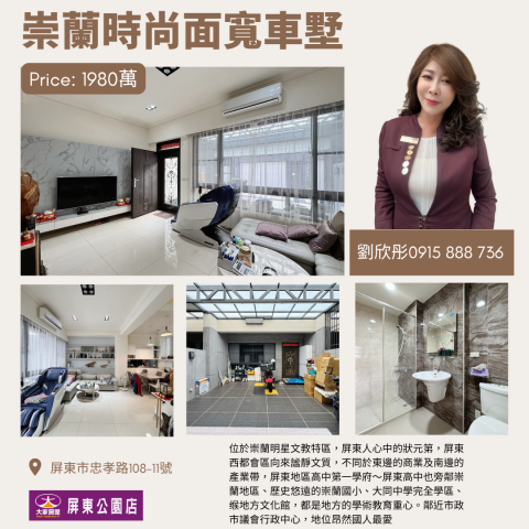 #崇蘭時尚面寬車墅優質社區輕屋齡-劉欣彤