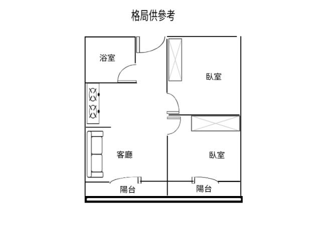 - 格局: 2房(室) 1廳 1衛 2陽台 1廚房