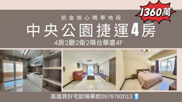 高雄買好宅 中央公園捷運|明星學區|4房明亮華廈|稀有釋出