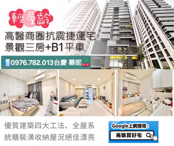 高雄買好宅 後驛高醫商圈抗震捷運宅|景觀三房B1平車