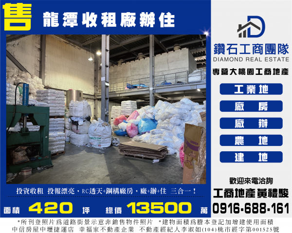 桃園買廠房 請找 工商地產黃禮駿 ✅協助新創企業找到起家厝 ✅解決企業擴大的空間需求 鑽石工商團隊 專營全桃園 工商地產 工業地 廠房 廠辦 店面 ~要買要賣都歡迎來電委託~