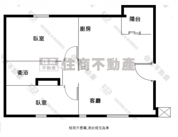 - 格局: 2房(室) 2廳 1衛 1陽台 1廚房