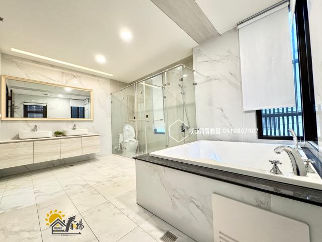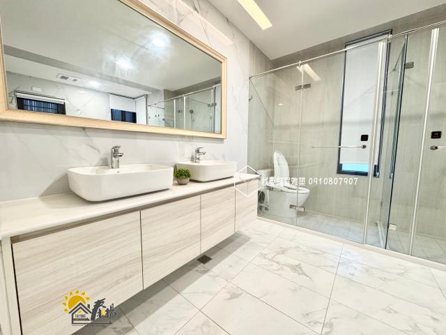 | 優勢 | 1. 居住機能完善:屋齡僅 3 年,屬新穎產品,電梯與雙車庫設計符合現代家庭需求。 2. 格局空間寬敞:5 房 6 衛配置,極適合三代同堂或需要大量私人空間的大家庭。 3. 通風採光佳:邊間三面採光,前後獨立出入口,且所有衛浴皆有窗,乾爽無異味風險。 4. 附贈設施豐富:頂樓擁有小泳池與露台,適合親子互動與休閒娛樂。 |