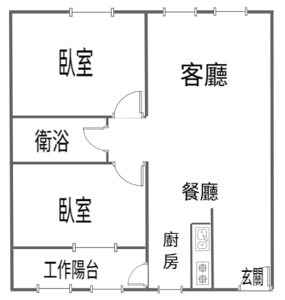 - 格局: 2房(室) 2廳 1衛 1陽台 1廚房