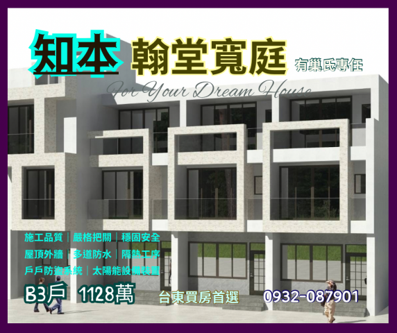 台東買房首選 台東市區1120萬 買新3房+大平車